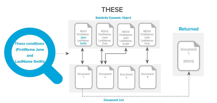- Document 3 isn't returned because it isn't associated with any RDOs. Remember, you must associate a document with an object in order for it to return in a These Conditions search.