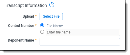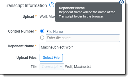 5. Fill out the relevant fields. See Uploading transcripts with Simple File Upload.