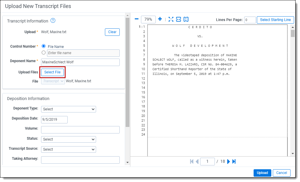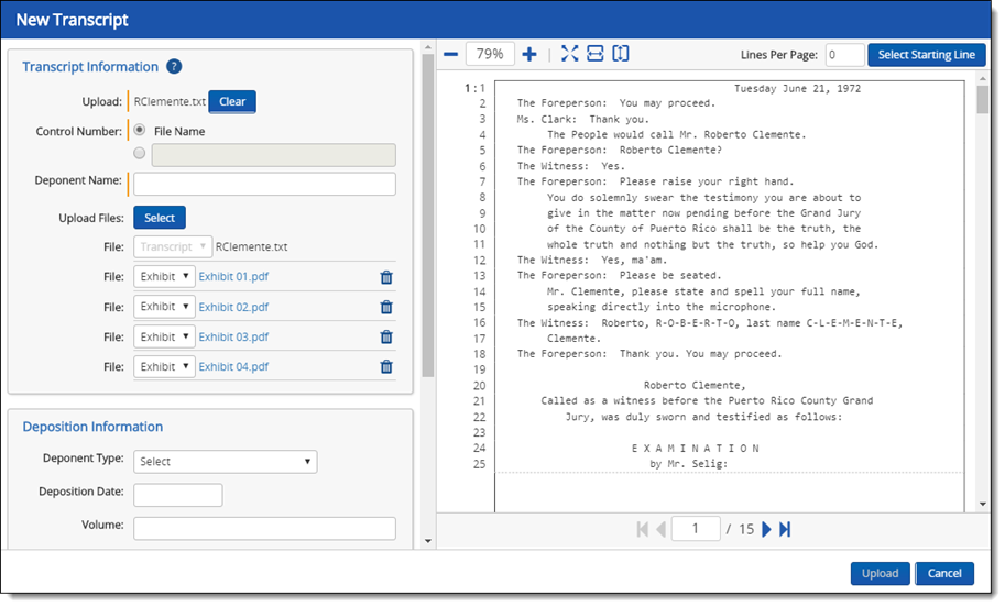 There may be situations where you only upload a portion of a transcript, or split up a witness transcript in volumes.