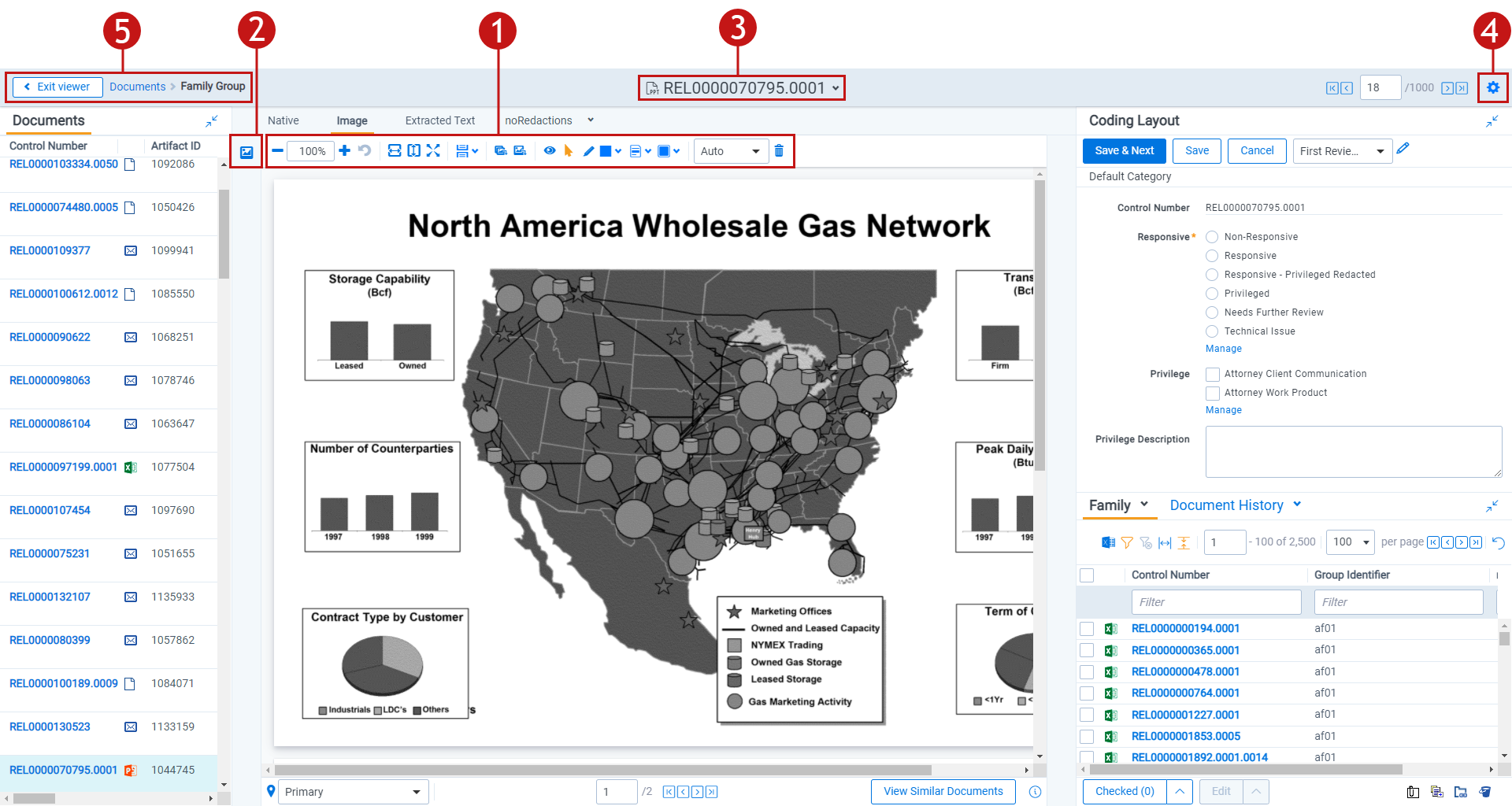 When in the Native Viewer, Image Viewer, or Productions Viewer, you can access and browse thumbnail renderings of a document's pages. Quickly scan, locate, and navigate to pages in an open document.
