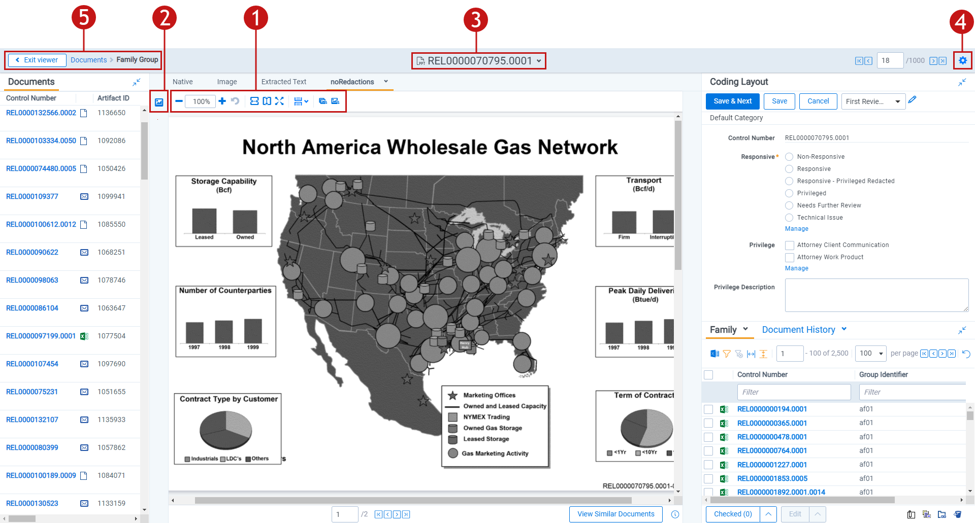 The Native Viewer offers several ways of viewing and working with documents. There are options available in the following sections of the Viewer: