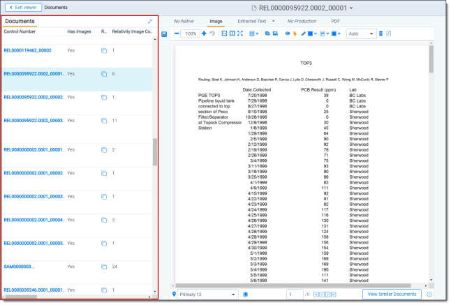 The Document preview panel allows you to view documents in the document list before launching the Viewer. It also allows you to filter the list and quickly view documents in the results which makes the process of finding documents more efficient. To learn more, visit Document preview panel.
