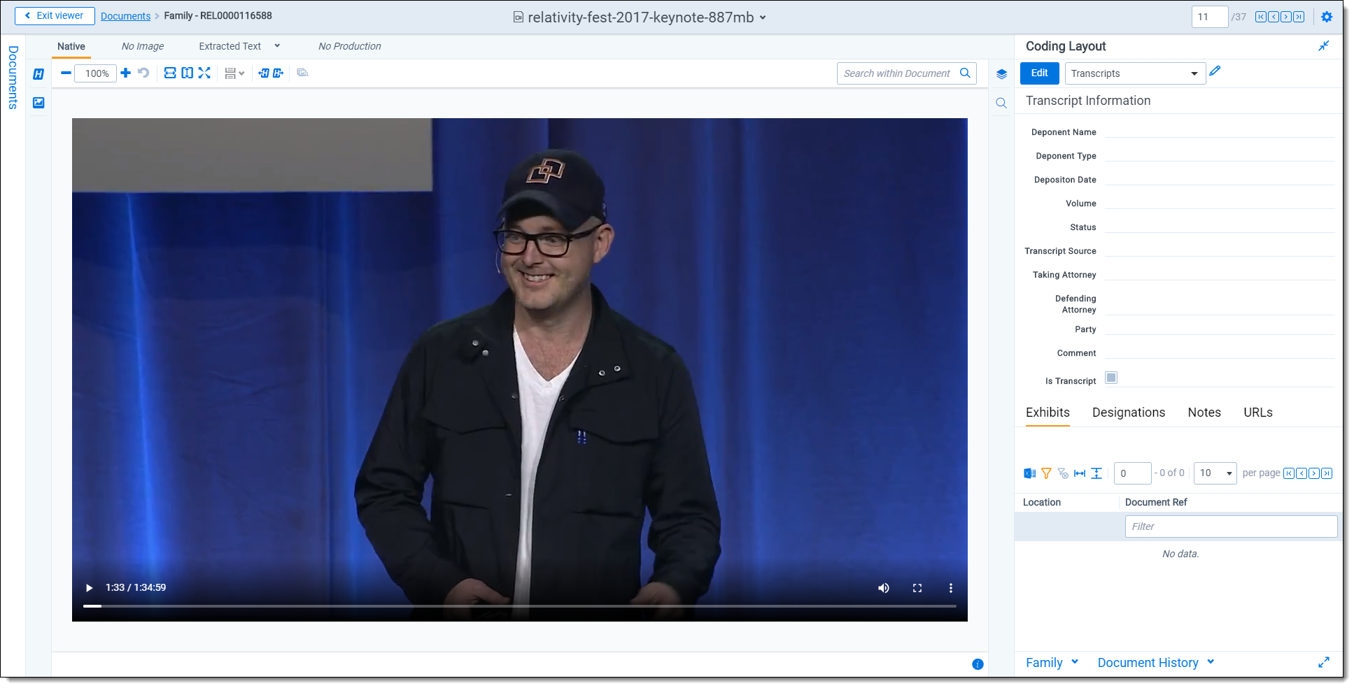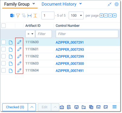 • Production Production icon—displays all productions in which the document was included. You may not have permissions to view production information.