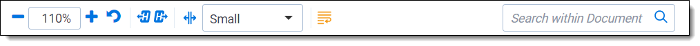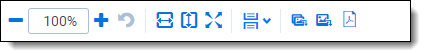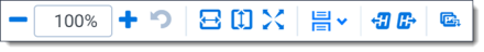 • Zoom out/in —zooms out and in on the current document in increments of 10% within a range of 10% to 4,000%. Your zoom setting persists as you navigate through a document set. This