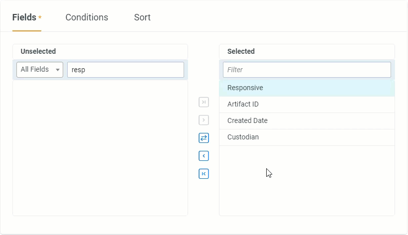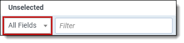There are filtering capabilities that you can use to help you locate fields. You can use the filter above each box to search for fields found in the corresponding box.