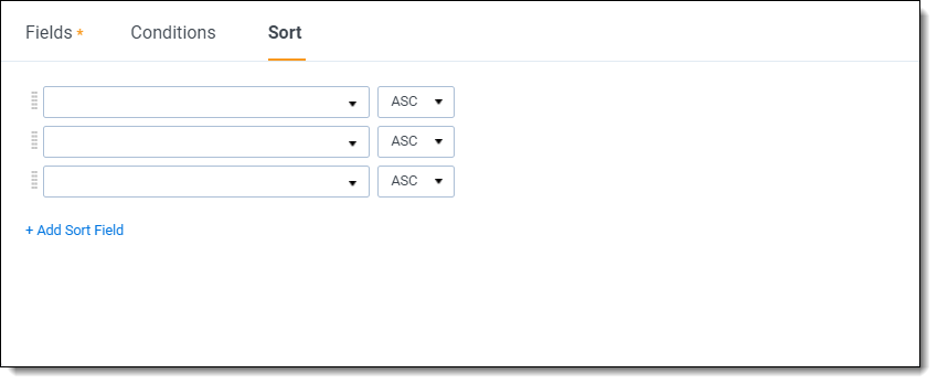 Each row represents a sort criterion. Select the desired sort field in the first column. The second column sets whether the sort should run ascending or descending. The sorts are applied in nested order.