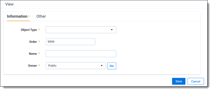 • Order - sets where the view appears within the view drop-down list. Items that share the same value are sorted in alphanumeric order.