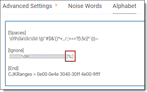 - Delete the % sign from the [Ignore] section. Take care not to remove the gray boxes, which represent non-printable characters. Removing them may break the index.