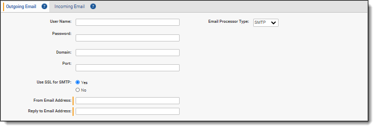 - Email Processor Type—select the email service you want to use to interact with third-party applications. Consult with your IT department if you are unsure which email processor type to use alongside your mail server.