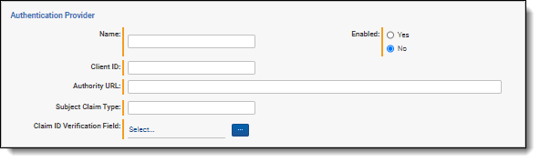 - Claim ID Verification Field—the value which will be used to match value coming in selected Subject Claim Type.