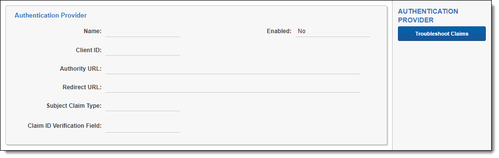 - Enter in information in the Authentication Provider fields. For more information, see Authentication Provider fields.