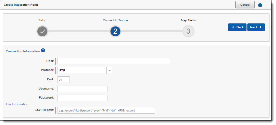To create an integration point for importing an FTP (CSV file), perform the following steps: