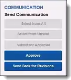• If sent back for revisions, the communication will change to Approval Pending and the user updates the communication. Once the updates are made, the user will resubmit and the processes follows the same path.