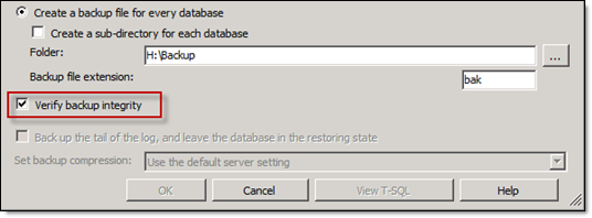 Although not required, verifying a backup is a useful practice. Verifying a backup checks that the backup is physically intact, ensures that all the files in the backup are readable and can be restored, and confirms that you can restore your backup in the event you need to use it.