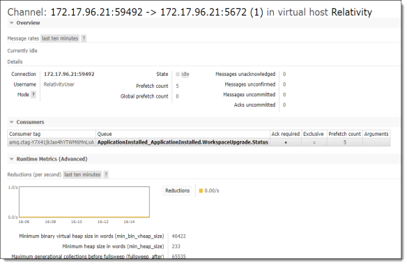 For Relativity, if there is a “C” under Mode, this generally indicates the channel is dedicated to sending messages. Similarly, a populated Prefetch value generally indicates the channel is dedicated to receiving messages.