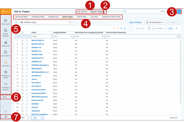 7 All tabs menu Click to view all the tabs that a user has access to and are flagged as visible.